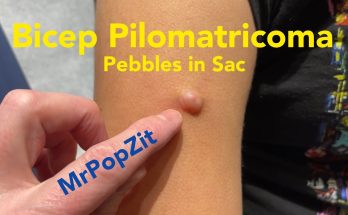 Bicep Pilomatricoma. Hardened pebble growth in arm. A few pebbles in the sac. Excision and closure. Mr. PopZit 3010 Read More