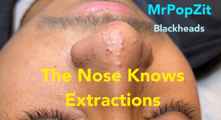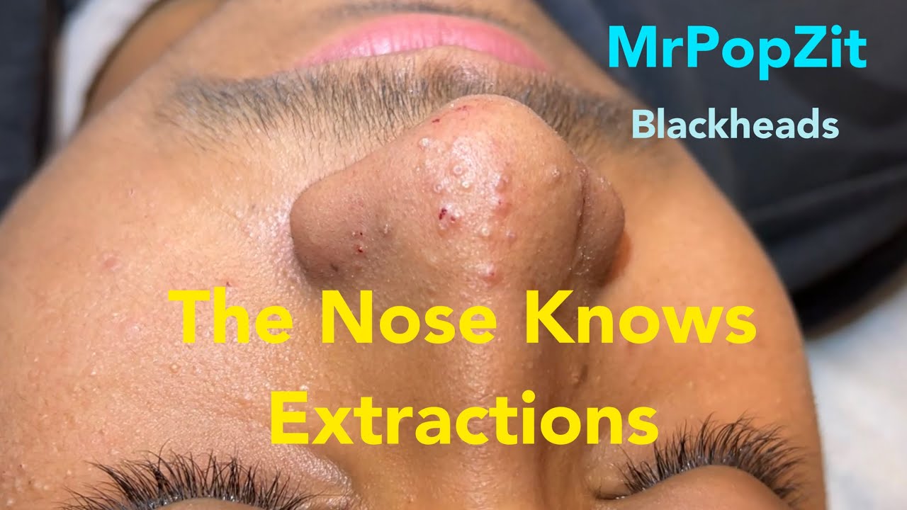Nose extractions. Blackheads, whiteheads, milia.Keratin plugs extracted with deep squeeze. Pore dirt. Mr. PopZit 2710