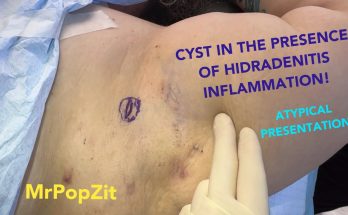 Pressurized Jawline Abscess Cyst. Squirting cyst pop with surprisingly large sac dissection on neck. Mr. PopZit 2411