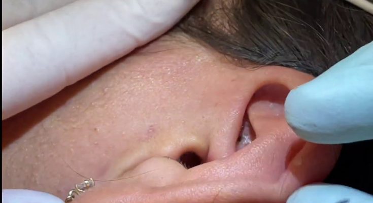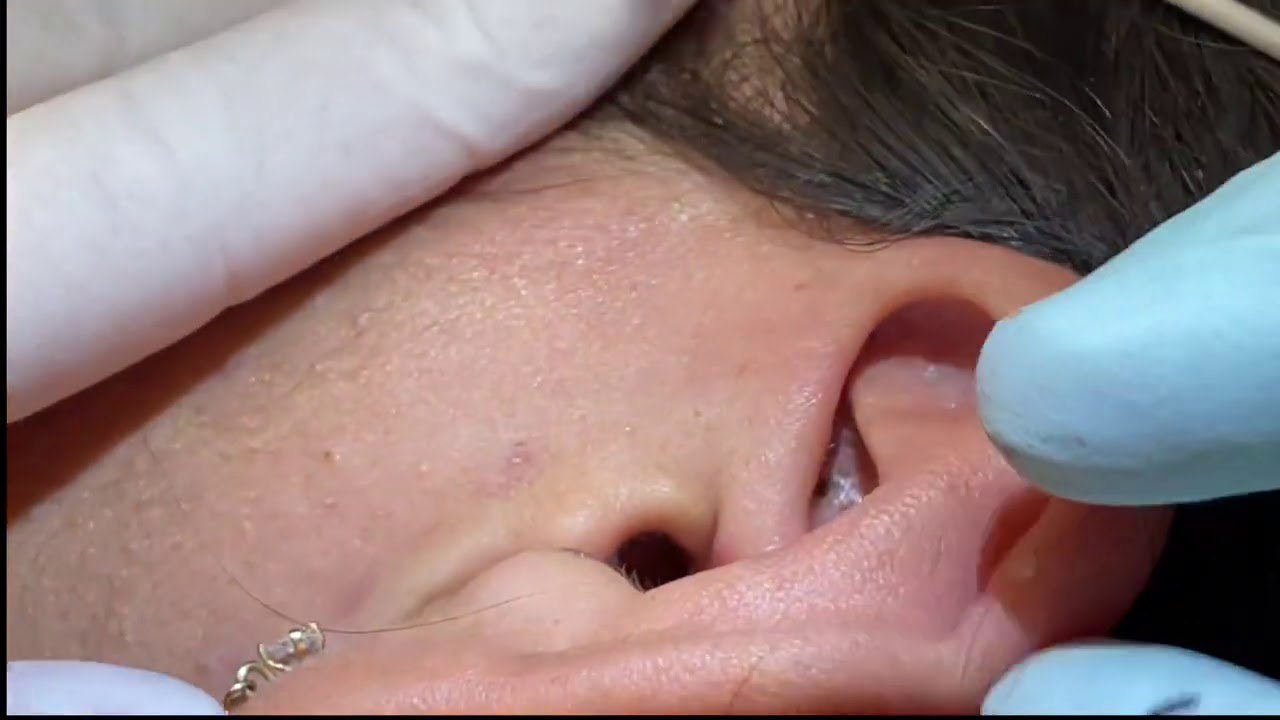 Ear blackheads are top-shelf, deeply embedded waxy plugs. Whiteheads. Upper ear blackhead extractions. Mr. PopZit 1812