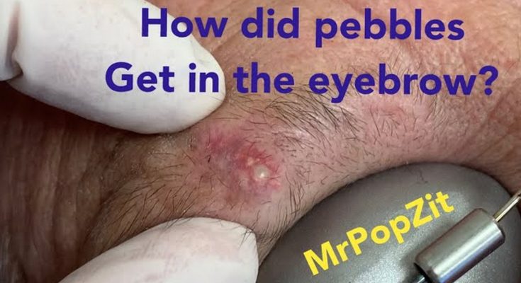 This patient had a very painful calcified cyst on her eyebrow. It was removed months ago and grew right back even bigger. We are going deeper to make sure we get every last piece to ensure it doesn’t grow back. Very unique cyst pop. Multiple rock hard 1mm pebbles come pouring out when I apply pressure.