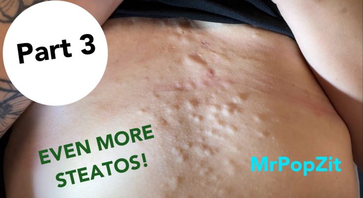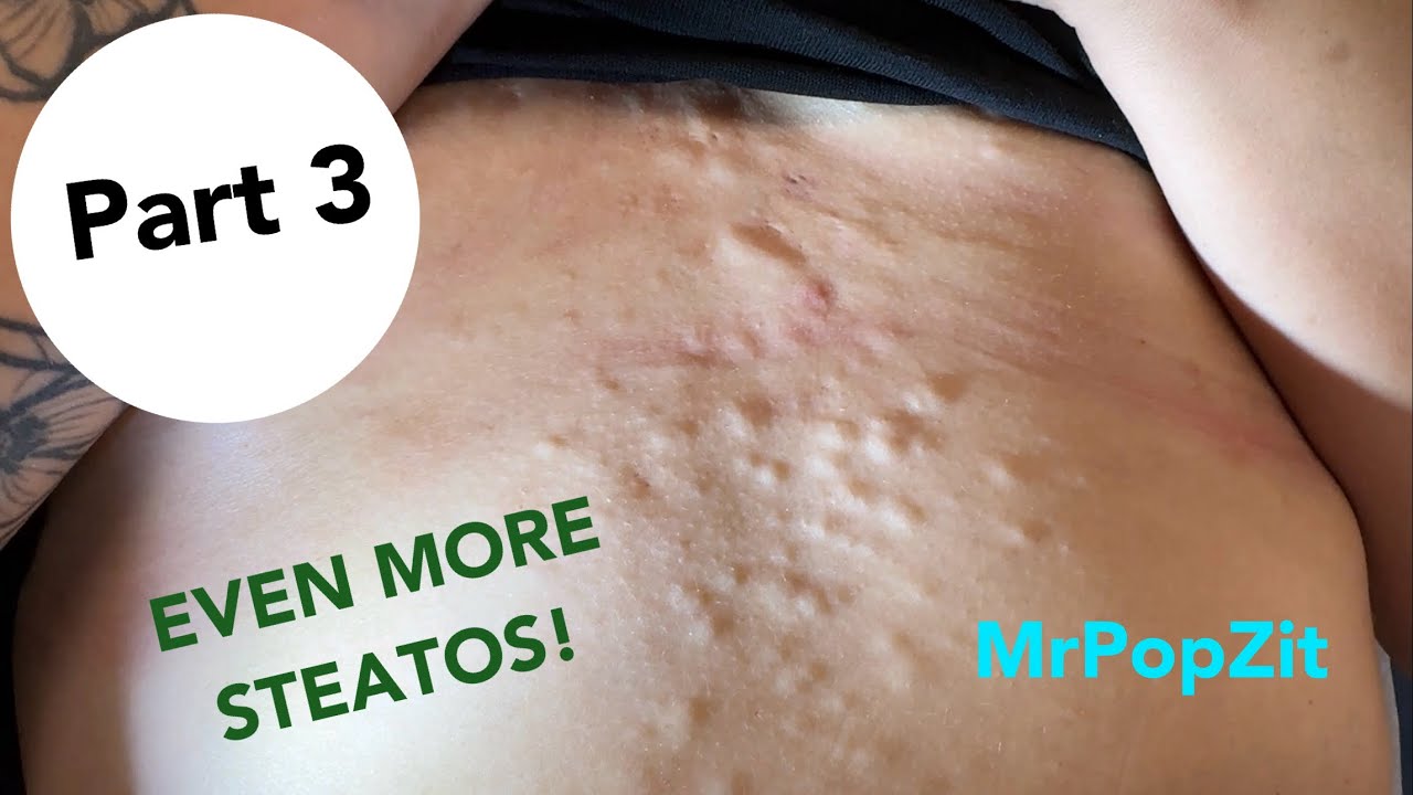 Even more steatocystomas! Part 3 of clearing the bumps from her chest. Sacs with butter removed. Mr. PopZit 170126