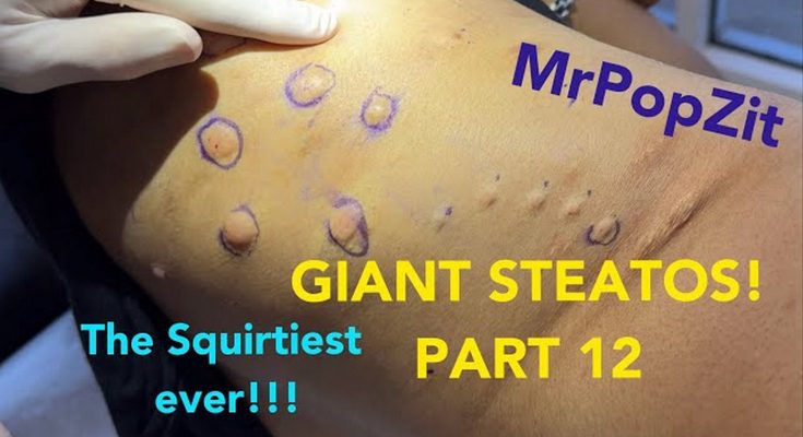 This is the last (for now) of a series of pops on arguably my most famous patient! Her giant steatocystomas educated the masses on all possibilities involving this condition.