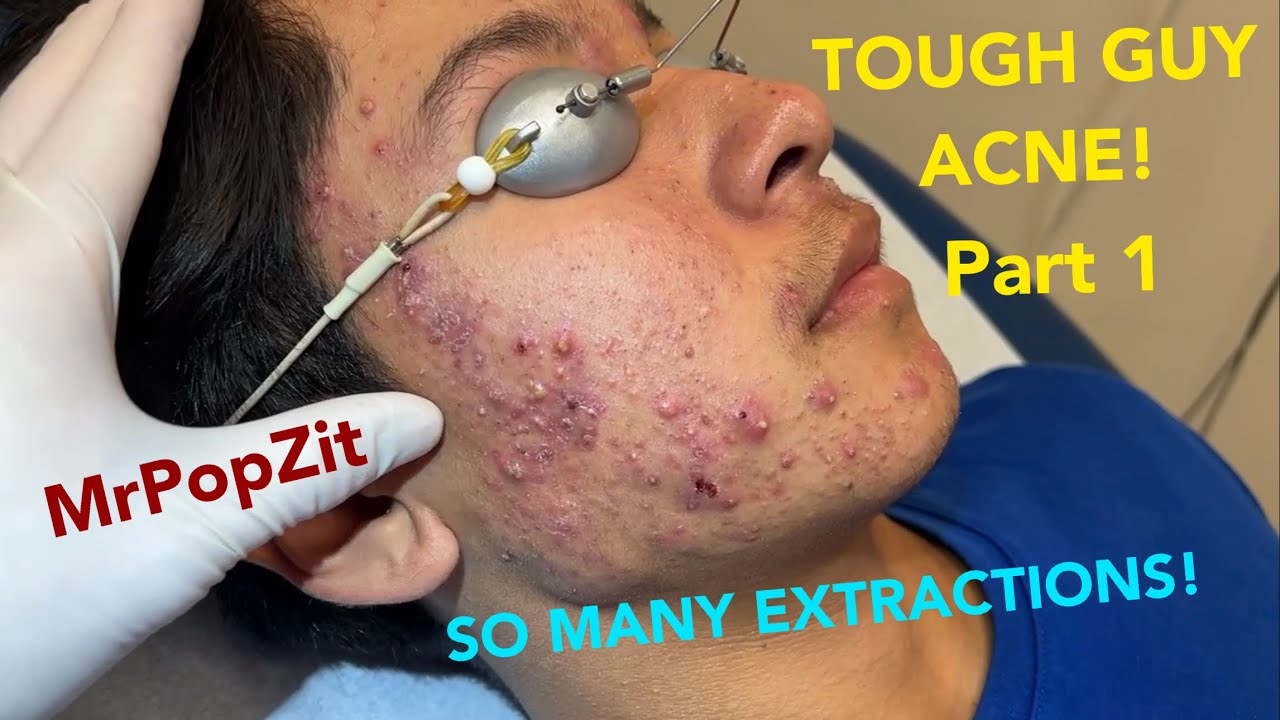 Severe hormonal acne in a young patient. So many clogged pores expressed. Explosive inflammation! Mr. PopZit 060226