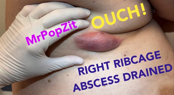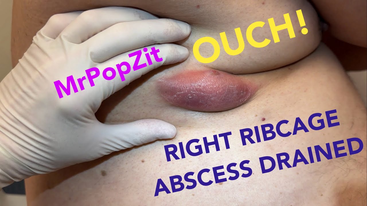 Giant ribcage abscess. A very tender fluid pocket was drained, flushed, and packed, with a 6-day follow-up. Mr. PopZit 200226