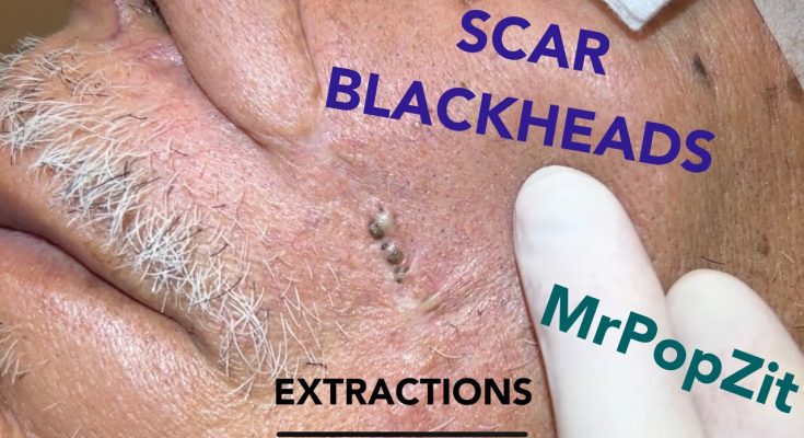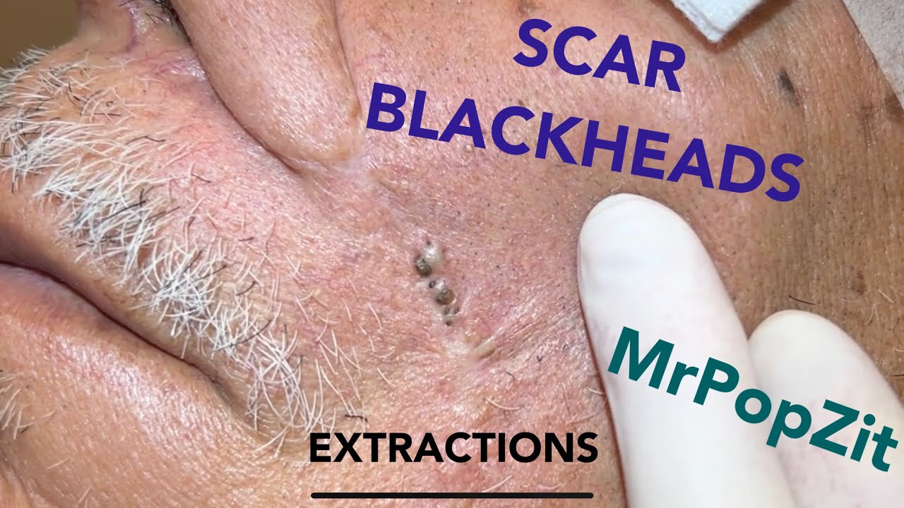 Giant blackheads imbedded in scar tissue extracted. Common occurrence with surgical procedures. Mr. PopZit 280226