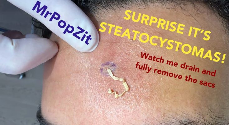 Surprise face bumps turn out to be steatocystomas! Incision and drainage done with full sac removal. Mr. PopZit 020326