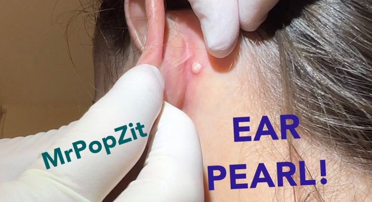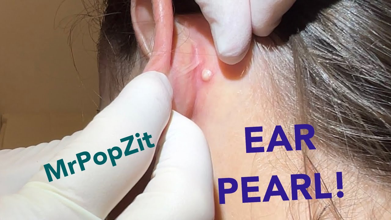 Nice little perfect round pearl tucked in behind the ear. Follicular cyst extraction. No need to make a bigger cut on these ones and make a bigger scar. You can fit the tip of the hyfrecator into the small 2mm opening and the heat obliterates the small thin sac left behind. Thanks to my patient for sharing! Hello to her sister who is a big fan of these types of videos. 😁