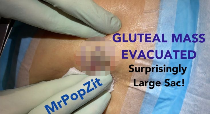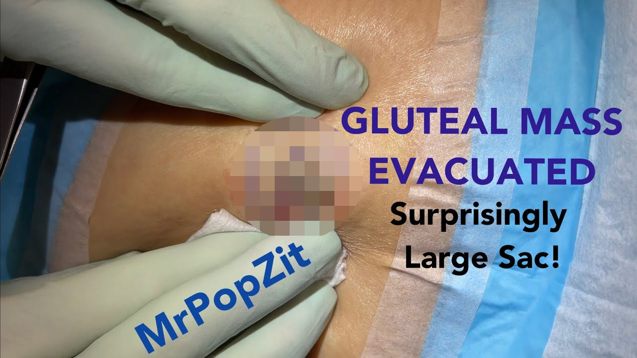 Large growth on the buttock. Drained and sac removed. Patient gets instant relief! Wait for 2 wk f/u. Mr. PopZit 290326