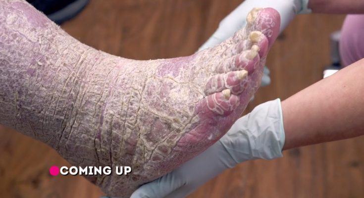 Dr. Sandra Lee assists Louis, who is covered in scaly, dry skin that makes him feel like an alligator. Discovery TLC Dr. Pimple Popper 160426
