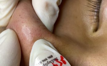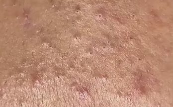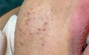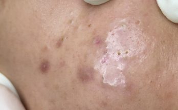 This was a common extraction I do, removing keratin that collects in pockets and open pores around scar tissue. This patient had a large flap repair with a skin graft …